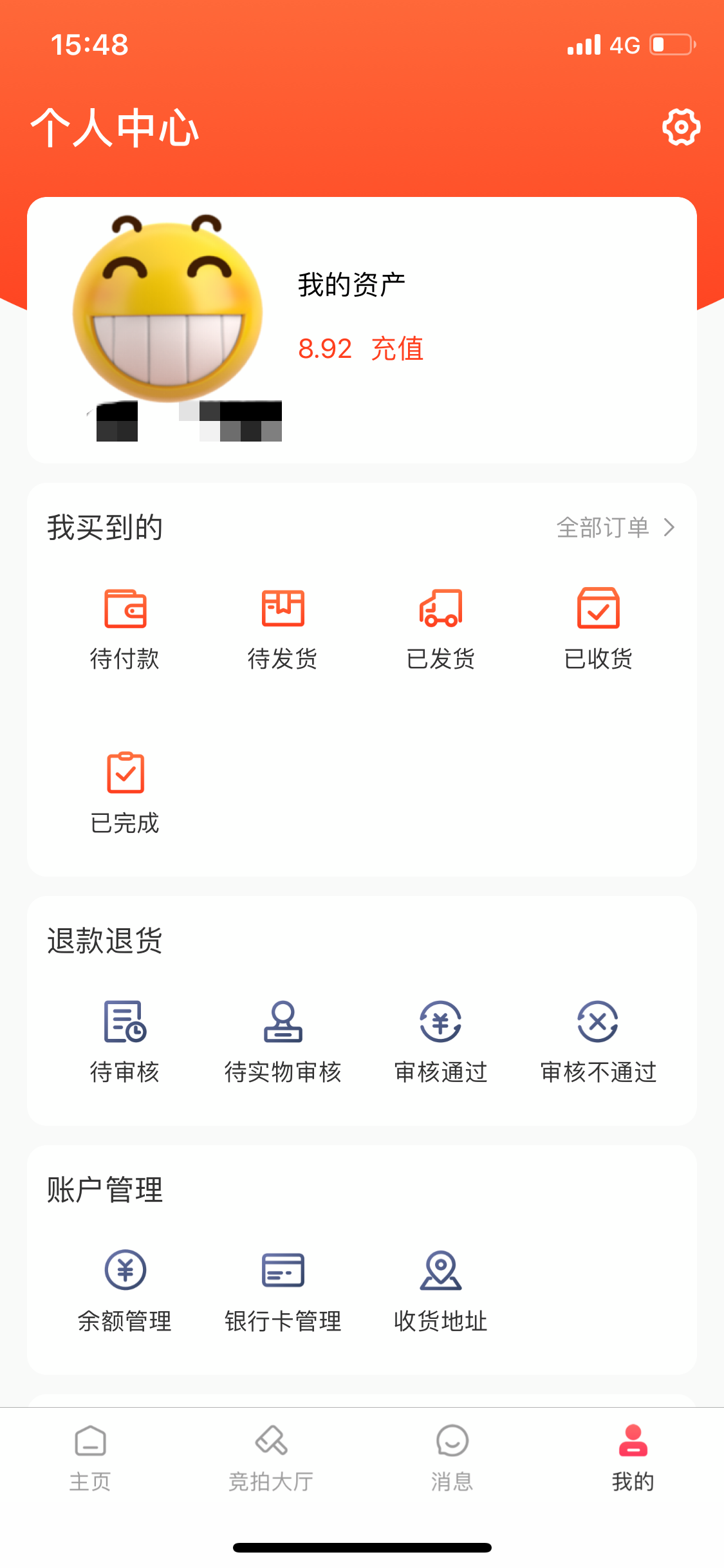 5、完成协议签署跳转至个人中心界面,界面新增“退款退货”及“账户管理”功能